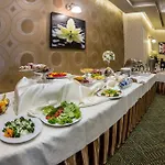 Na terenie posiadłości można zjeść śniadanie w formie bufetu. Zlote Arkady to jedna z 3 restauracji na miejscu.